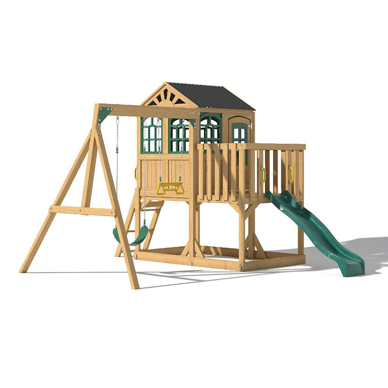 Als Premiumholz machen Hemlocks harte Textur, stabile physikalische Eigenschaften und hervorragende Haltbarkeit eine ideale Wahl für Möbel, Bau und Dekoration. Egal, ob es sich um empfindliche Schnitzereien, tragende Strukturen oder alltägliche Dekorationsbedürfnisse handelt, Hemlock kann sie erfüllen und für viele Handwerker und Designer das Material der Wahl machen.WidewayDas Highline Retreat Swing Set besteht aus 100% FSC-Hemlock aus nachhaltig bewirtschafteten Wäldern, vor allem, weil das Holz nicht splittert, eine starke natürliche Wetterbeständigkeit aufweist und daher gegen Holzfäule resistent ist und das Holz mit einem Wasserbasis behandelt wird, der fast keine Erhaltung erfordert. Dieser natürliche Farbstoff (ohne Chemikalien) ist umweltfreundlich undKindersicher, ist es zur perfekten Wahl für Kinderschwankungen.